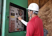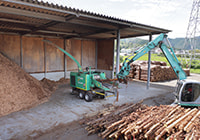 間伐等による未利用原木材を、チップに加工(破砕)し再生可能エネルギーのバイオマス燃料として木材を使い切る仕組みづくりに努めています。