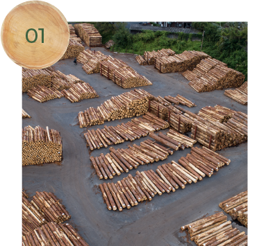 毎月4のつく日を市日として、原木市を本社と月田の2会場にて開催しております。本社は、2,600回、月田は2,300回(2021年6月現在)の開催を数え歴史ある原木市です。今後も原木市の開催を実施し、安定した原木の供給を継続し、地域木材産業の要として貢献してまいります。