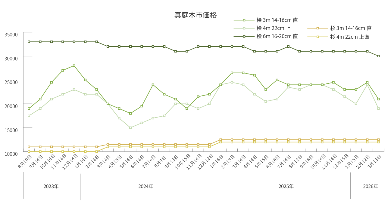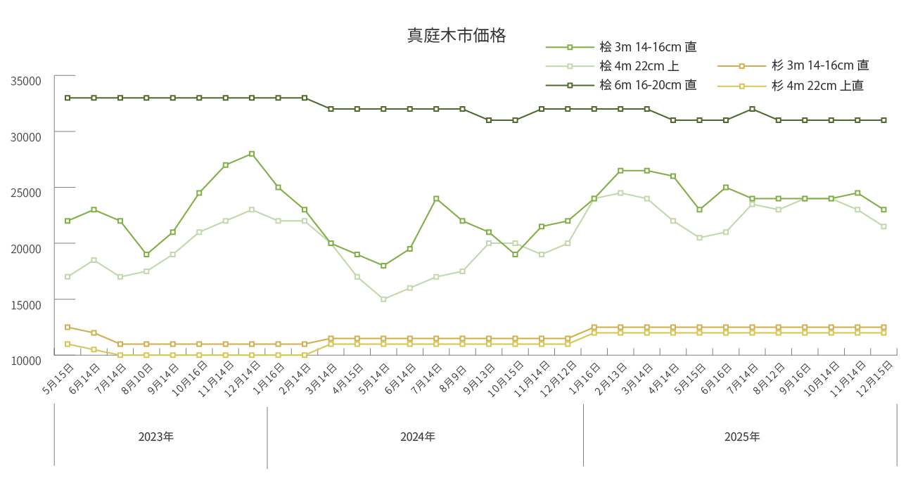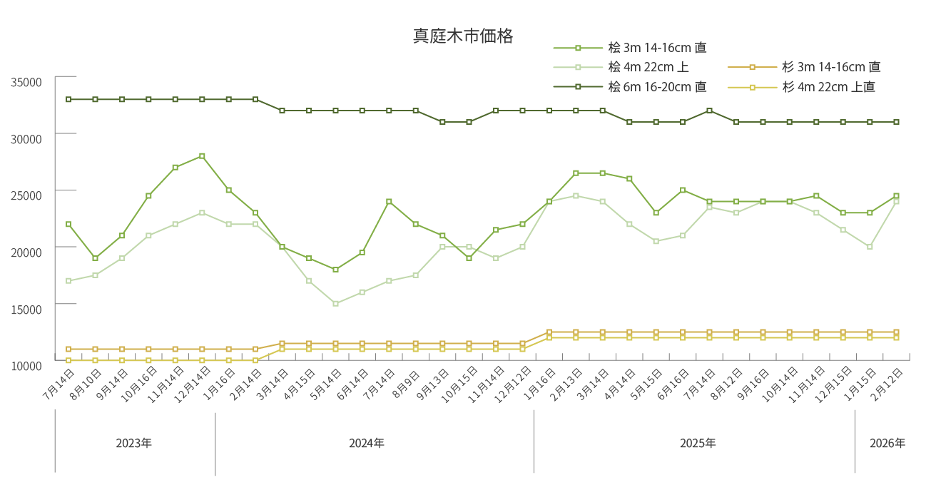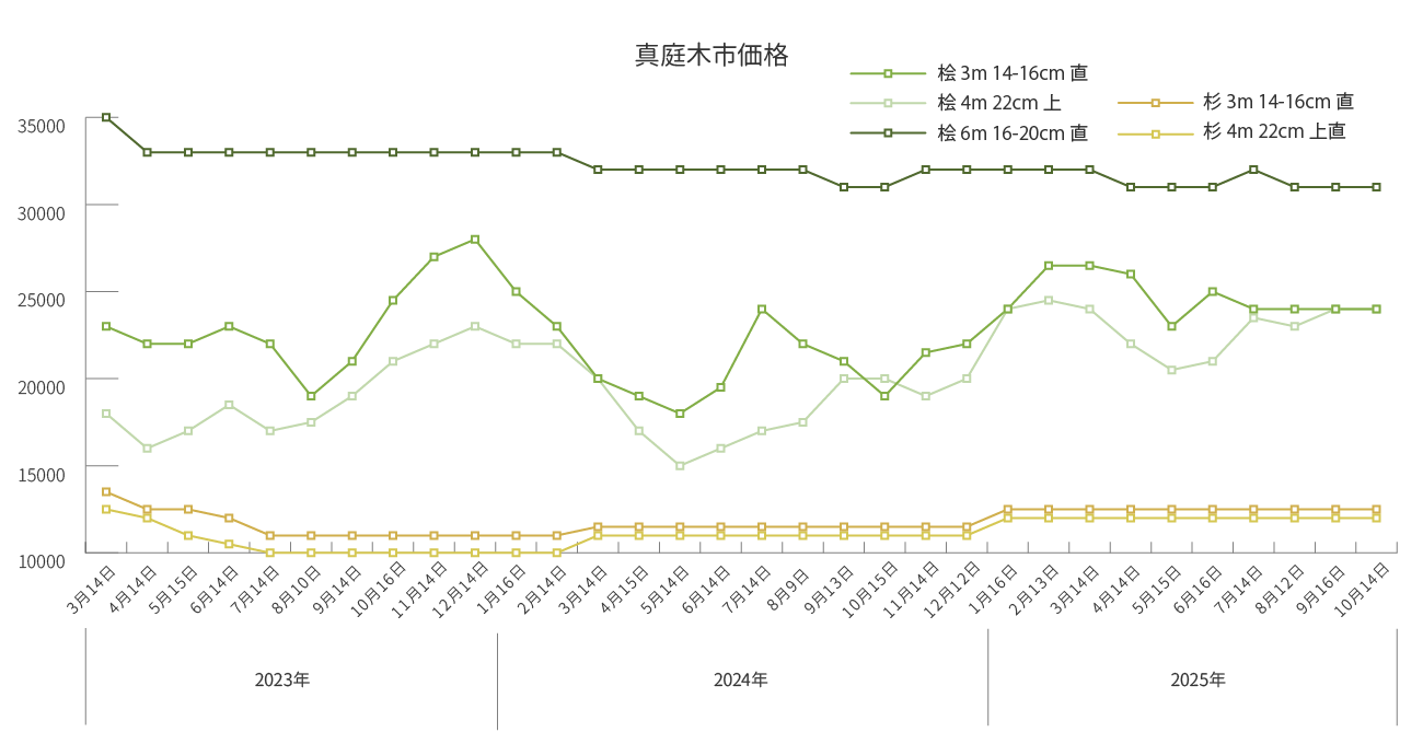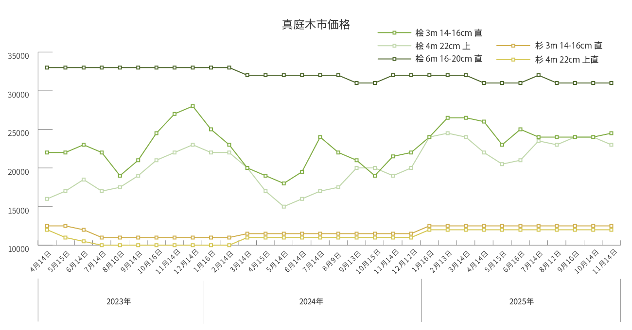 市場安定開催のため、継続的な山林育成のため、環境循環へ取り組みのため立木、山林を買取しております。